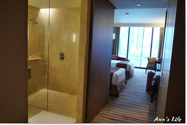 金沙的更高價套房裡也是有浴缸的喔!但我們只住一晚,就別太苛求了,幸虧這淋浴空間還蠻寬敞,