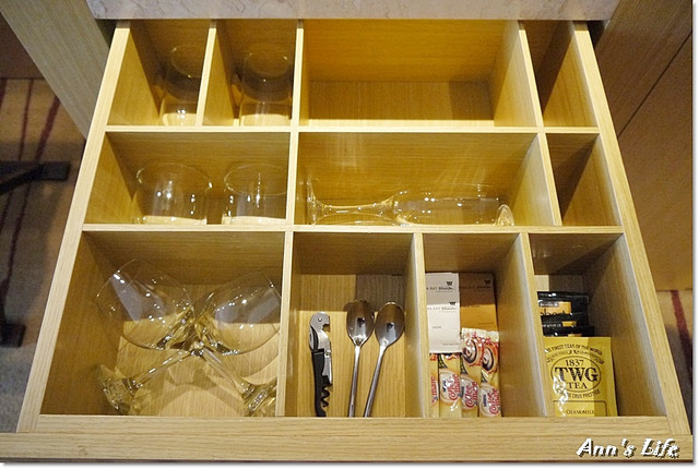 mini bar的配備很多,各式高腳杯真適合夜晚來點美酒小酌,