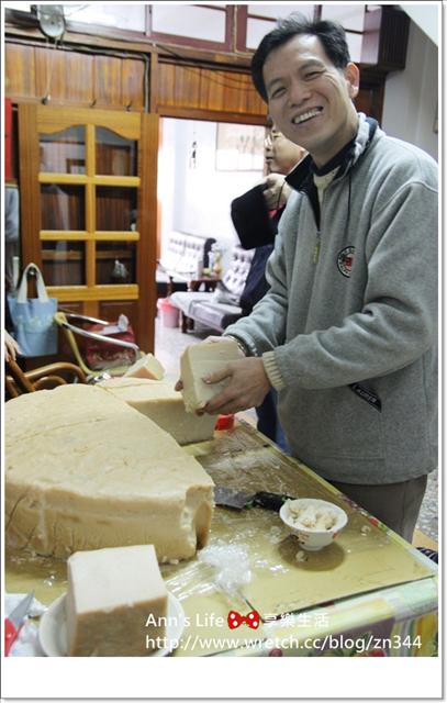 而被我戲稱為型男大主廚的叔叔則拿著菜刀把蘿蔔糕分成好幾份,這才方便收藏和料理。