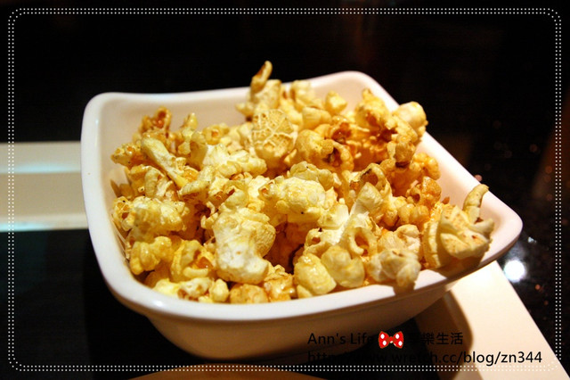 免費的爆米花當零嘴,有鹹的和甜的可選,我比較喜歡甜的,
