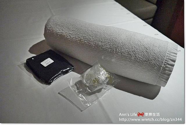 沐浴後要換上會館提供的黑色spa專用褲,並確實戴好浴帽防止髮絲不安分的四散,
